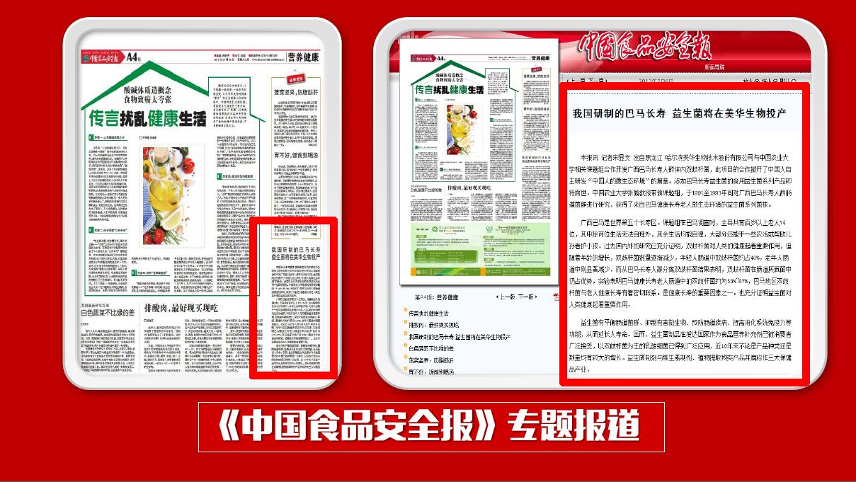 另外,我們的巴馬菌呢,還榮登了中國食品安全報專題報道。