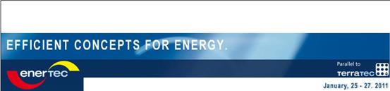 德國萊比錫國際新能源展是歐洲地區(qū)專業(yè)的能源與環(huán)保技術(shù)展覽會,有德國著名的展覽公司德國萊比錫展覽集團(tuán)主辦,兩年一屆。2011年將在enertec同期舉辦國際環(huán)保技術(shù)專業(yè)展覽(Terratec)。 兩個展會涵蓋了能源供應(yīng)和環(huán)保技術(shù)以及廢物回收利用等領(lǐng)域。展會得到了德國聯(lián)邦經(jīng)濟(jì)技術(shù)部(Bundesministerium für Wirtschaft und Technologie);德國生物源技術(shù)協(xié)會(Kompetenzzentrum Bioenergie e.V.);德國可再生能源利用促進(jìn)會(VEE Vereinigung zur Förderung der Nutzung Erneuerbarer Energien e.V.)的大力支持。2009年展會展覽毛面積15000 m² (11 %的增長率),吸引了來自11個國家的237家展商 (4 %的增長率),超過90%的展商表達(dá)了參加 enertec 2011的意愿。來自49個國家的10941名觀眾(10%的增長率)參觀了展會,將近90%的觀眾確認(rèn)在enertec上實(shí)現(xiàn)了參觀本展會的目的,專業(yè)觀眾所占比重:92%